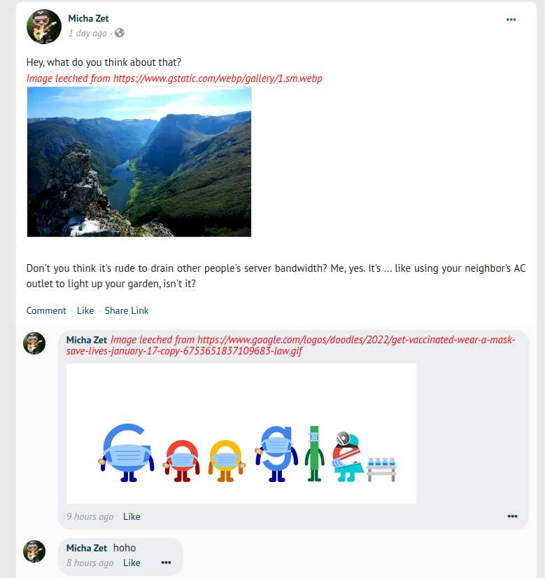 Enough of the preamble. So, this component allows to embed external images in posts and comments by simply entering their link like: